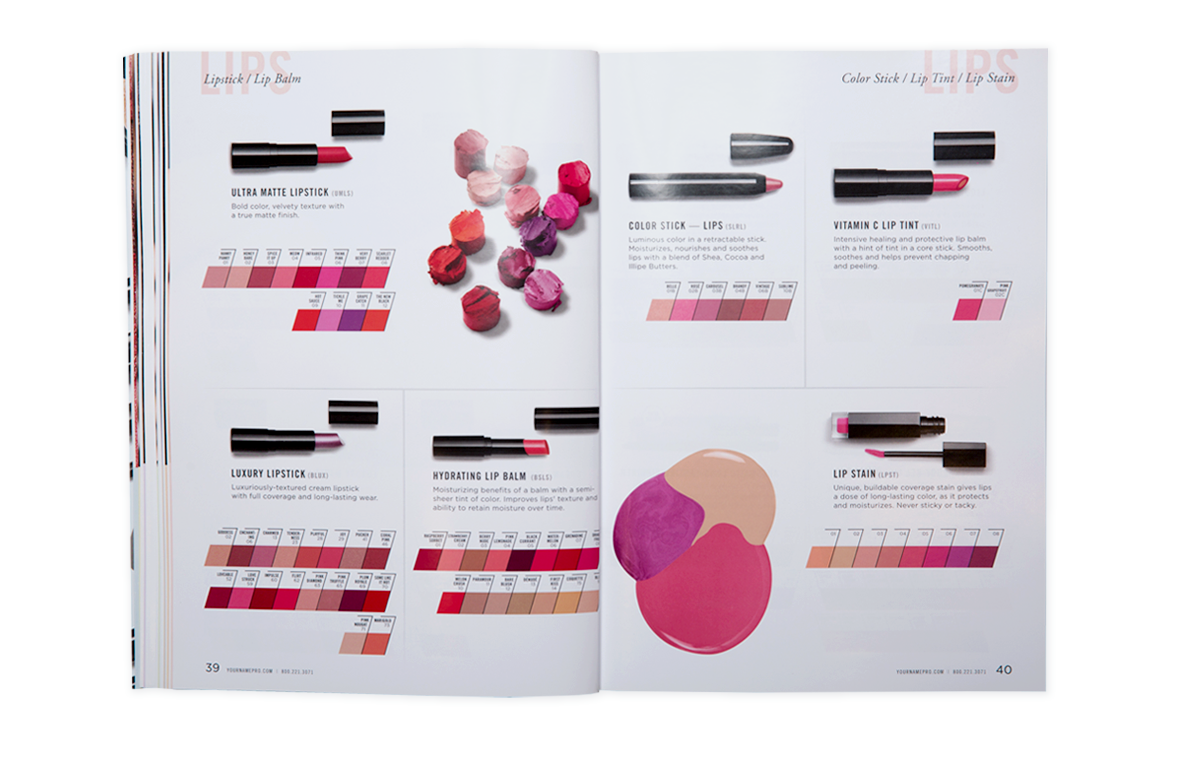 Freelance in-house designer for product catalog of white label beauty and skincare brand. A dense catalog with hundreds of products, this redesign transitioned away from their previous standard catalog format and toward a more dynamic, editorial design direction.